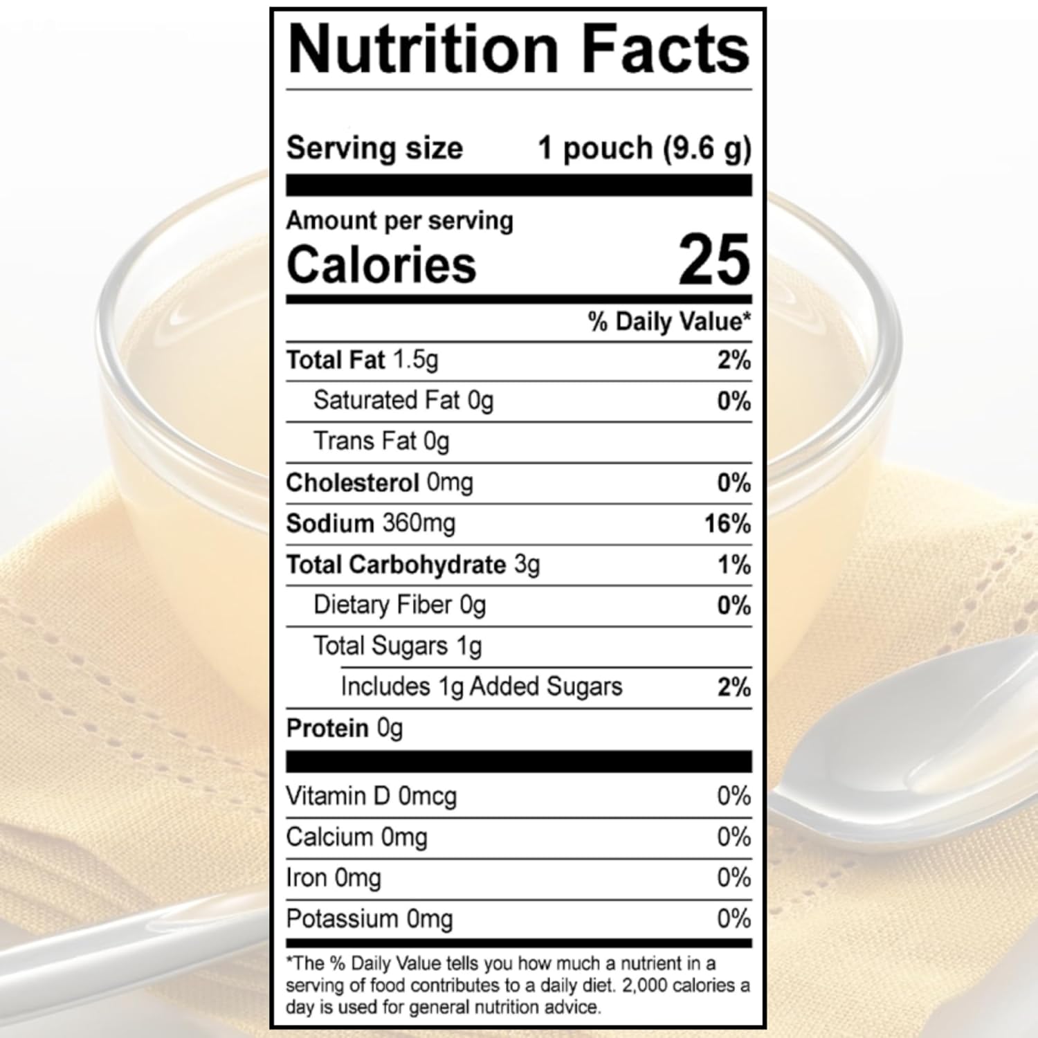Ingredients: Chicken Stock, Maltodextrin, Chicken Fat, Salt, Sugar, Natural Flavor, Yeast Extract, and Xanthan Gum.
