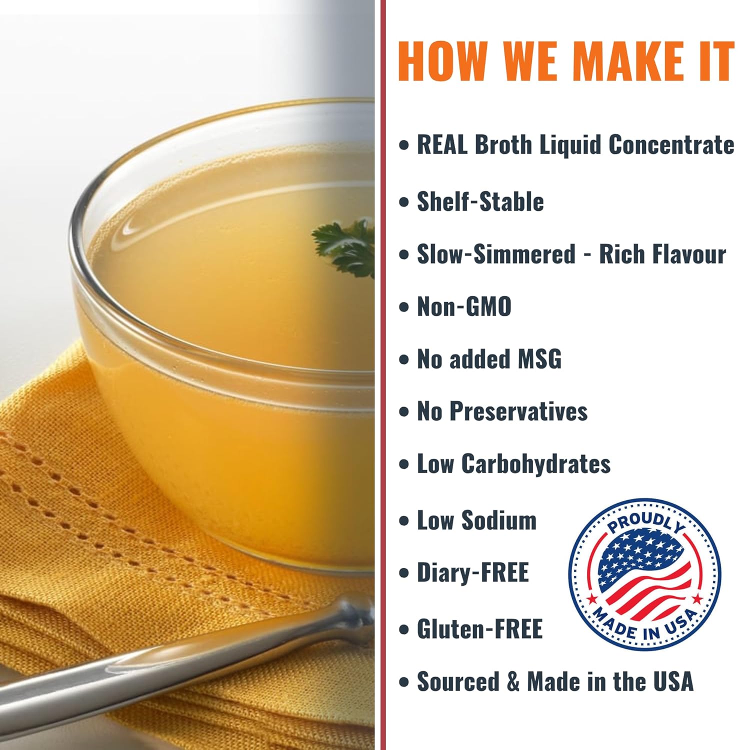 RICH CHICKEN BROTH FLAVOR – Create deep, savory chicken soup stock in minutes. Our concentrated chicken broth packets bring the taste of slow-simmered organic chicken broth without hours in the kitchen. Just add one packet of chicken broth concentrate to hot water for instant chicken soup, sipping bone broth, or a flavorful base for noodles, rice, and sauces. Non-GMO, gluten free chicken broth concentrate that’s dairy-free, keto and paleo friendly. No MSG added, no artificial flavors — just pure chicken stock taste.